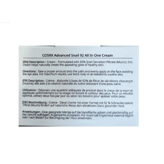 Infusée avec 92 % de mucine d'escargot, cette crème crée une barrière hydratante pour repulper, hydrater et apaiser la peau.Cette crème multi-solutions quotidienne glisse sur la peau et ravive l'éclat de la peau.
