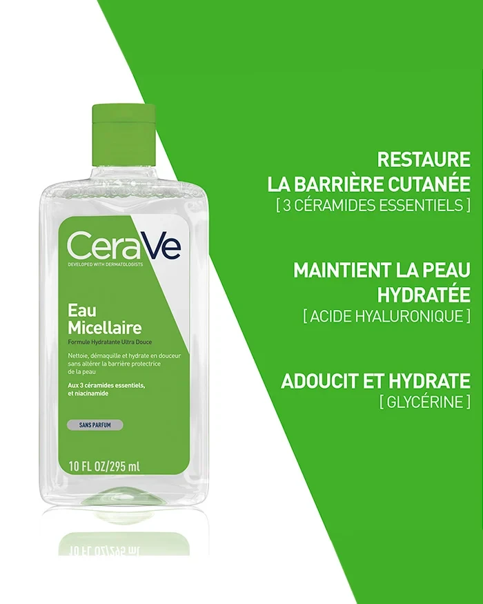 L'Eau Micellaire de CeraVe est un produit 3-en-1 qui nettoie, démaquille et hydrate les peaux normales à sèches, sans altérer la barrière cutanée. Elle nettoie la peau en douceur et élimine les impuretés, la pollution et le maquillage du visage, des yeux et du cou.