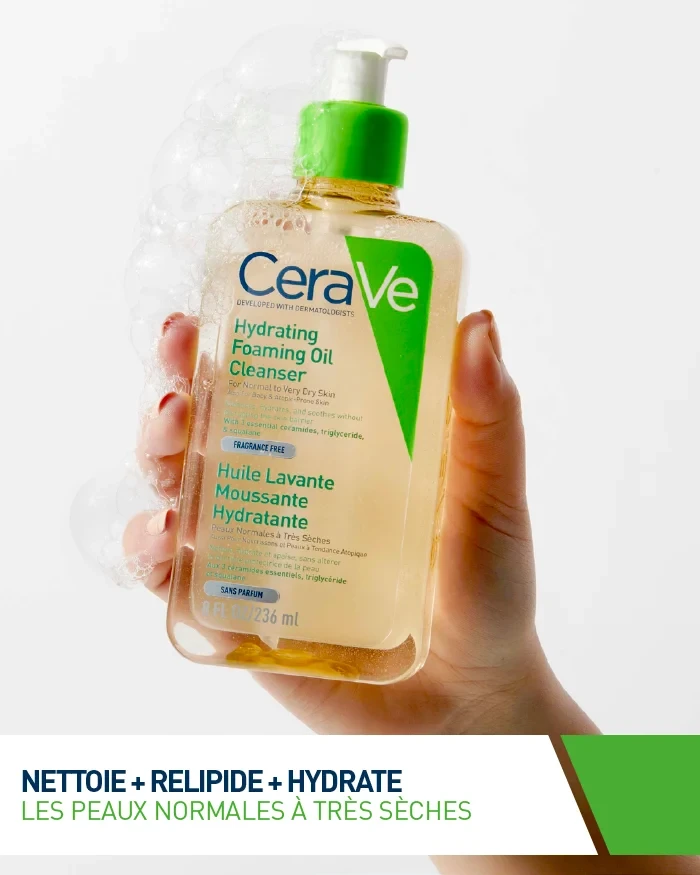 L'Huile Lavante Moussante Hydratante de CeraVe nettoie les peaux normales à très sèches et à tendance atopique. Elle nettoie la peau en douceur et relipide grâce à un complexe unique de triglycérides et de squalane, lipides clés naturellement présents dans la peau, ainsi que d’une base lavante douce formulée à partir d’acides aminés.