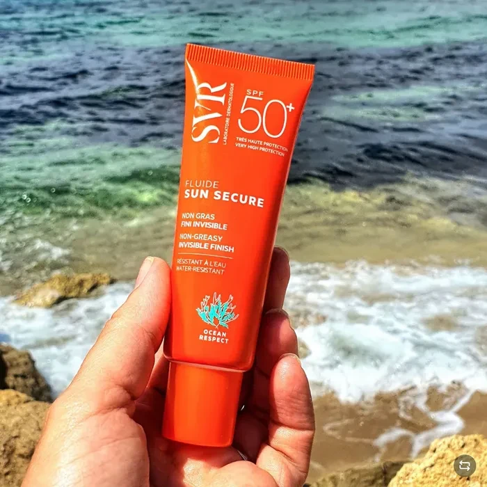 Le Fluide Solaire Non Gras Visage Sun Secure de SVR est un fluide qui offre une très haute protection solaire. Ce soin a une association de filtres brevetés anti-UVA et UVB, anti-lumière visible et anti-infrarouges qui jouent un rôle de bouclier pour protéger la peau. Sa formule est biodégradable et respectueuse de l'environnement marin. Elle résiste à l'eau, à la transpiration ainsi qu'aux frottements. Ce fluide est adapté à la peau de toute la famille, même aux peaux hypersensibles au soleil.