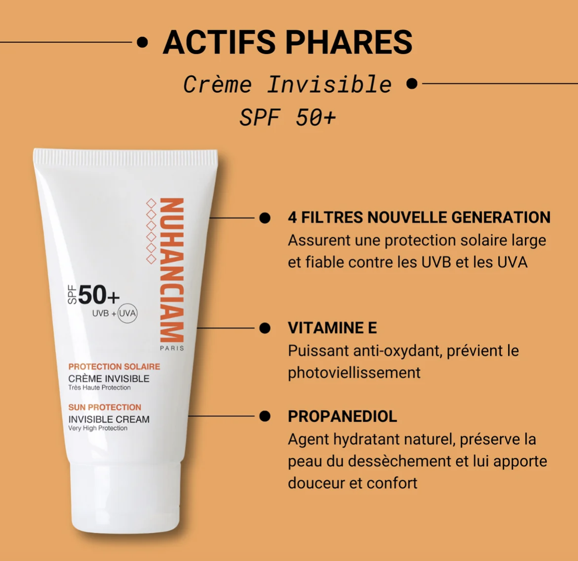 Cette protection solaire apporte une protection large spectre UVA + UVB. Légère et facile à appliquer, elle est non grasse et vite absorbée. Sa texture fine ne laisse pas de traces blanches, et ce sur toutes les nuances de peau.
