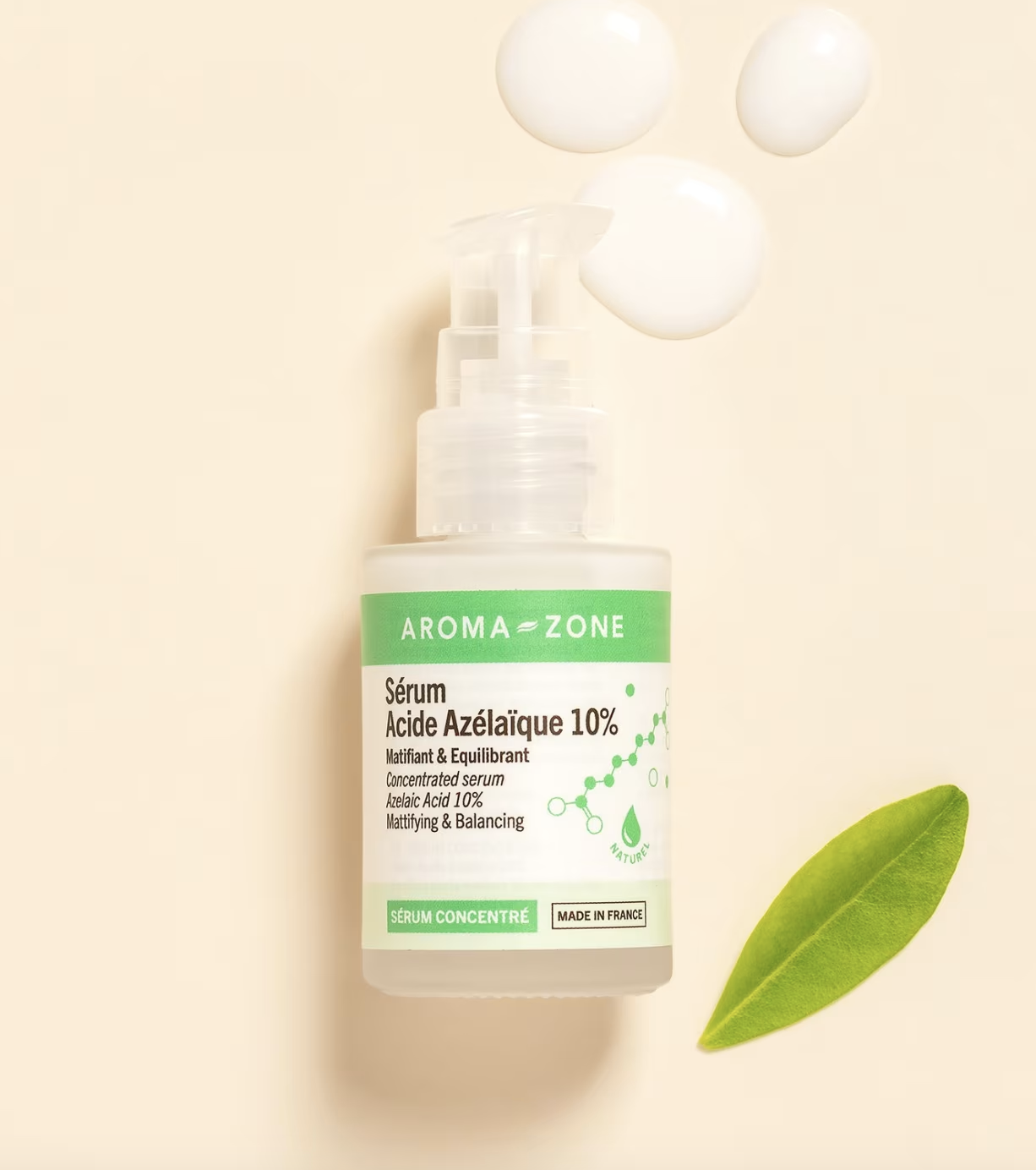 Ce sérum concentré à 10% d’Acide Azélaïque 100% d’origine naturelle cible les peaux mixtes, grasses et à tendance acnéique. Il désobstrue les pores, régule le sébum, diminue points noirs et rougeurs, et matifie le teint sans le dessécher. Enrichi en Acide Hyaluronique et Silice, il hydrate tout en absorbant l’excès de sébum. Très concentré, à introduire progressivement (2 à 3 fois/semaine au début).