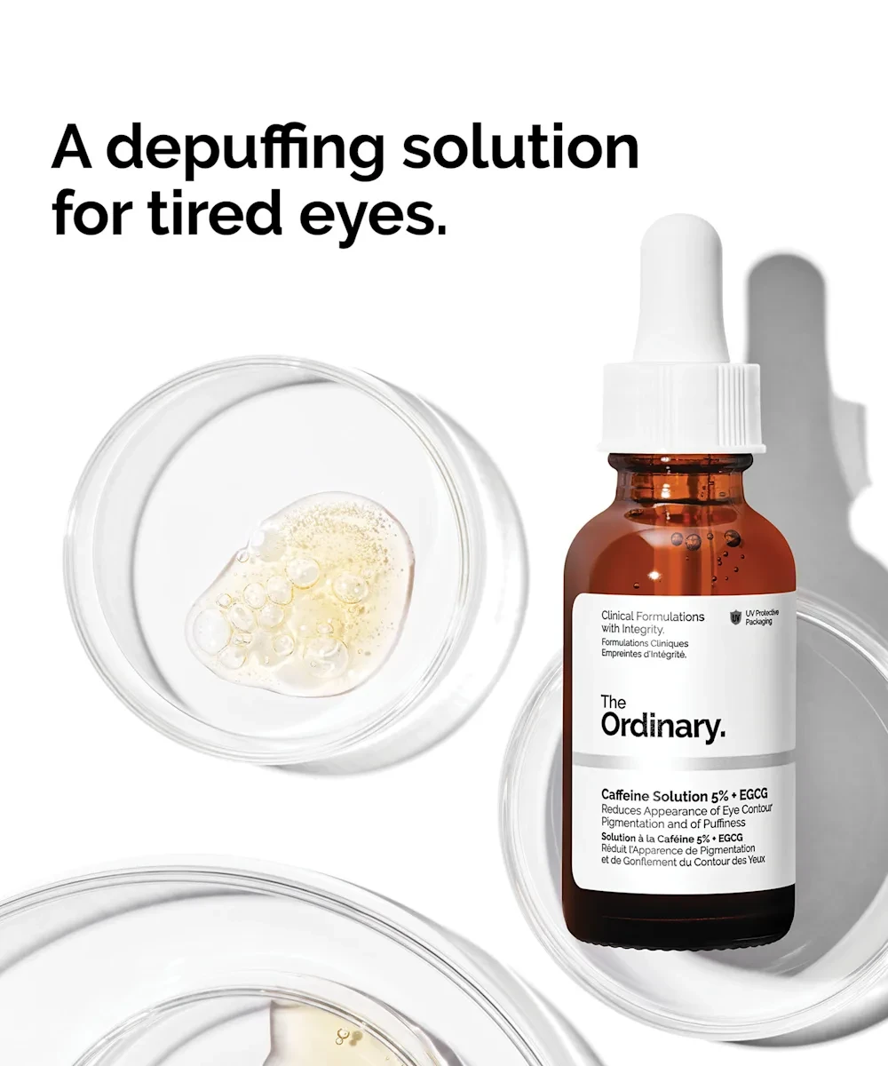 La Solution à la Caféine 5% + EGCG est un sérum efficace à base d’eau qui cible les cernes et les poches sous les yeux, favorisant l’illumination du contour des yeux. Formulé avec une concentration de 5 % de caféine et d’épigallocatéchine gallatyl glucoside (EGCG), ce sérum puissant contribue à améliorer l’apparence des yeux fatigués tout en offrant un effet illuminateur. La caféine réduit les poches, tandis que l’EGCG aide à réduire l’apparence des cernes.